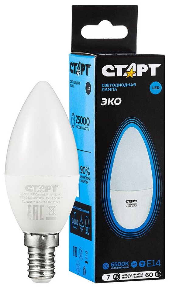 Ниже Вы можете прочитать отзывы на Лампа светодиодная LED Старт ECO Свеча, E14, 7 Вт, 6500 K, холодный белый свет, ознакомится с подробными характеристиками, посмотреть интересные обзоры и фотографии на Лампа светодиодная LED Старт ECO Свеча, E14, 7 Вт, 6500 K, холодный белый свет.