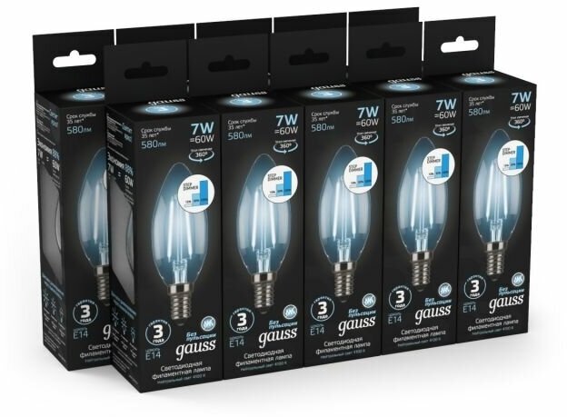 Gauss Лампа LED Filament Свеча E14 7W 580lm 4100К SQ103801207-S