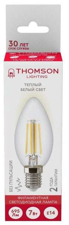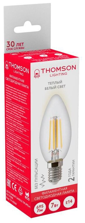 Ниже Вы можете прочитать отзывы на Типы/Лампочки/Филаментные Thomson Лампа светодиодная филаментная Thomson E14 7W 2700K свеча прозрачная TH-B2067, ознакомится с подробными характеристиками, посмотреть интересные обзоры и фотографии на Типы/Лампочки/Филаментные Thomson Лампа светодиодная филаментная Thomson E14 7W 2700K свеча прозрачная TH-B2067.