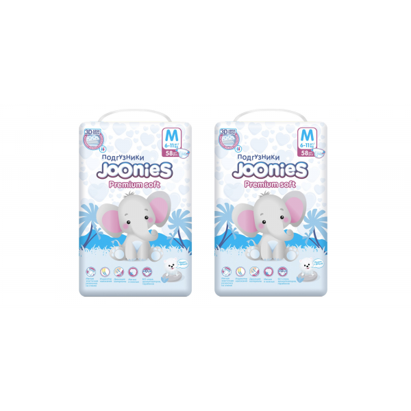 Подгузники детские JOONIES Premium Soft M 6–11кг, 58шт