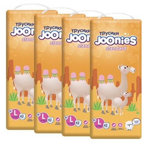 Купить Joonies Набор 4 х Подгузники-трусики Joonies Standard, размер L (9-14 кг), 42 шт