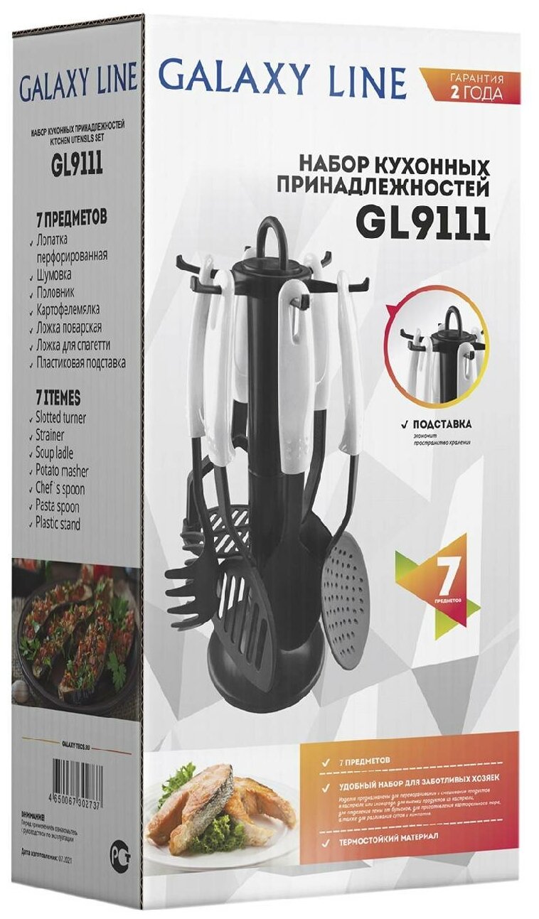 Набор кухонных принадлежностей GALAXY LINE GL 9111 нейлон, пластик (7 шт.) белый/черный интересное: