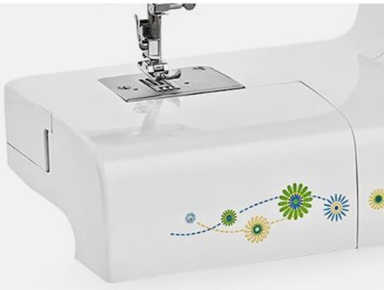 | Комплектация | - педаль; - мягкий чехол; - универсальная лапка; - лапка для полуавтоматического выполнения петли; - лапка для молнии; - лапка для пришивания пуговицы; - пластина для штопки; - прижимные колпачки для катушки, 2 шт; - отвертка; - шпульки, 3 шт; - иглы, 3 шт; - распарыватель/Кисточка; - направитель для отстрочки. |