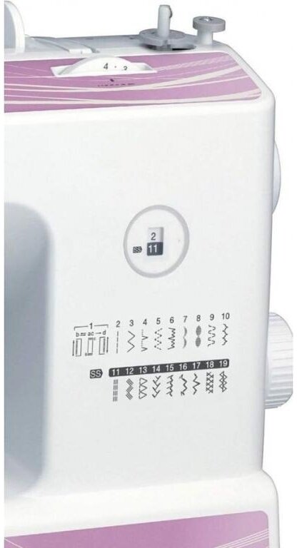 | Дополнительные функции | кнопка реверса, макси-узоры, регулировка давления лапки на ткань |