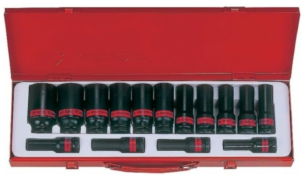 Набор ударных глубоких торцевых головок 1/2, шестигранные, 3/8-1&1/4, 15 предметов KING TONY 4416SP