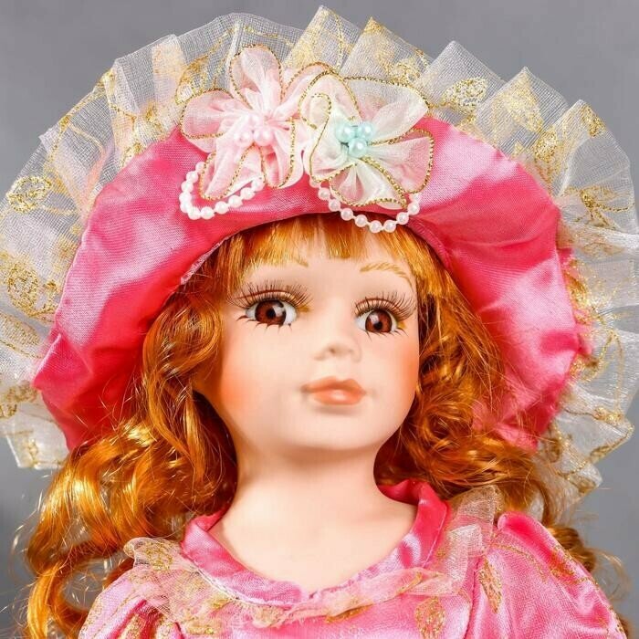 Купить Кукла коллекционная керамика "Мадмуазель Эльза в розовом платье и шляпке" 40 см.