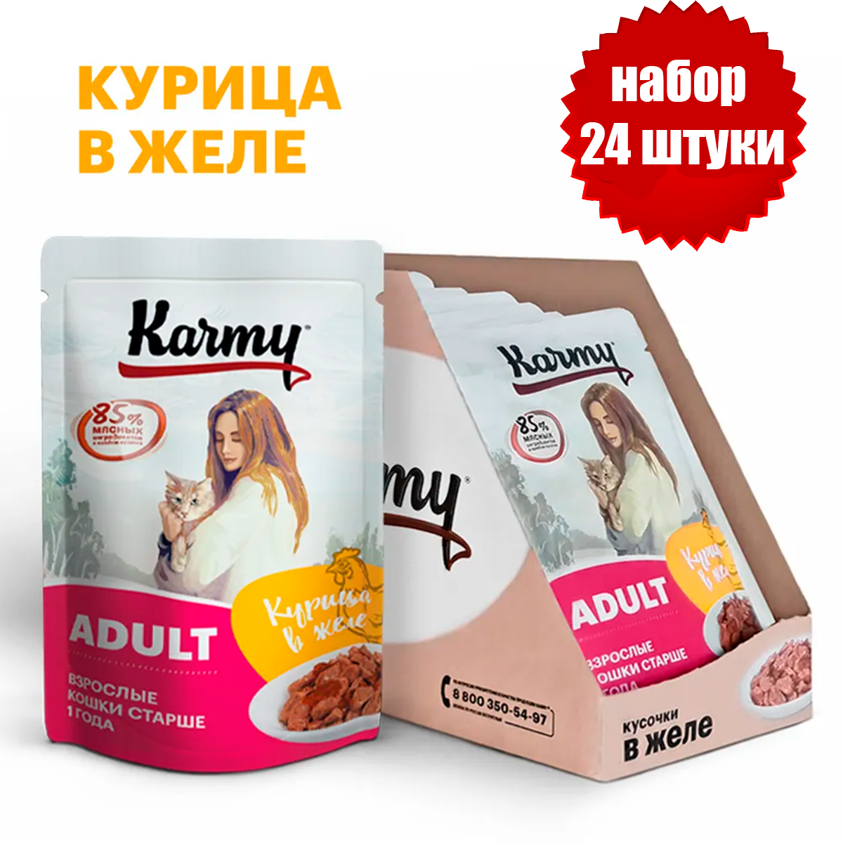 Karmy Adult пауч для взрослых кошек (кусочки в желе) Телятина, 80 г. упаковка 12 шт