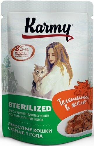 Корм Karmy Sterilized (в желе) для стерилизованных кошек, с телятиной, 80 г x 24 шт