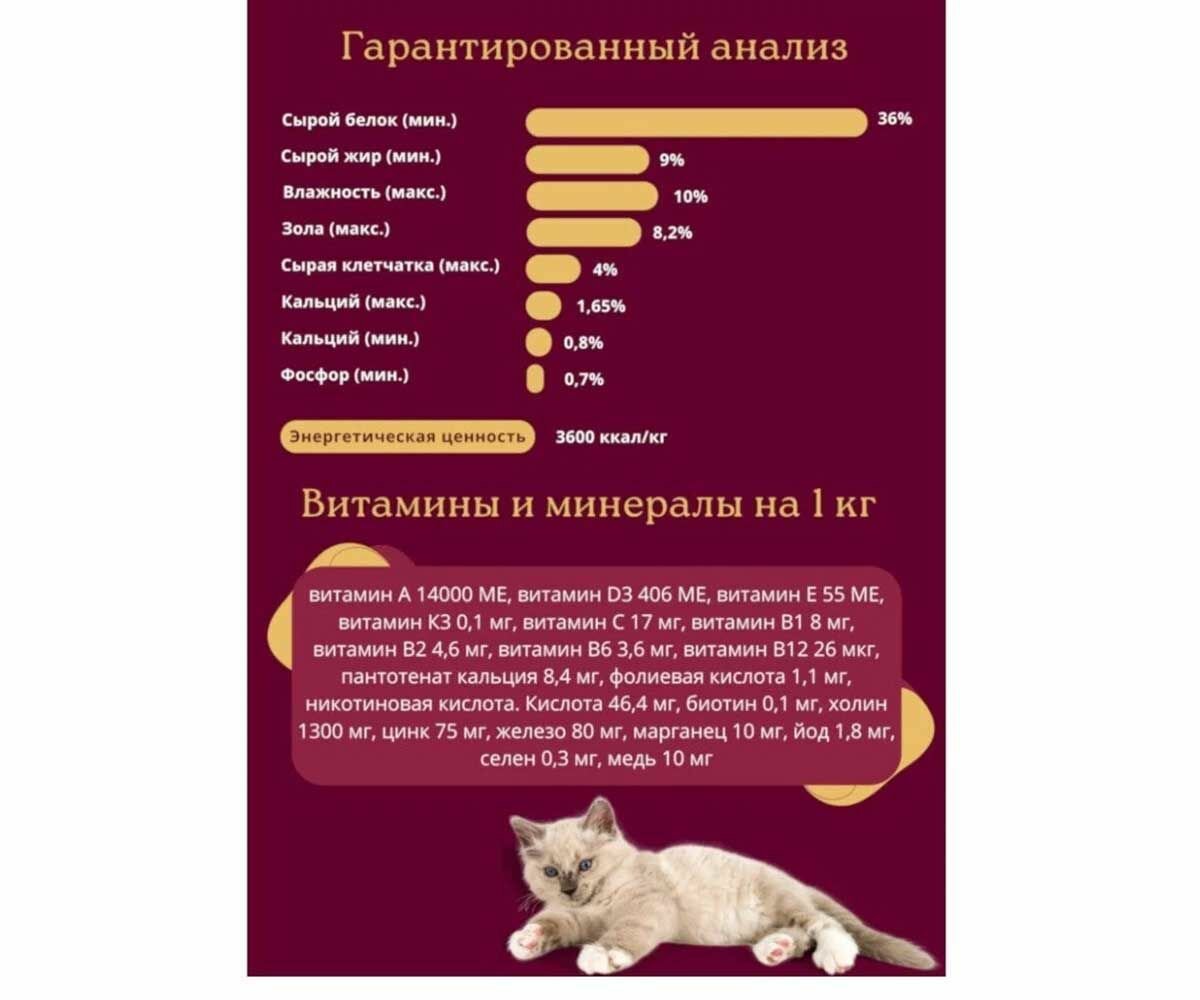 | Состав | куриное мясо, куриная печень, смешанная мука из индейки и курицы, мука из субпродуктов птицы, мука из свинины, рис, сорго, пшеничный глютен, куриный жир, пивные дрожжи, рыбий жир, льняное масло, свекольный жом, тростниковая клетчатка, овсяная оболочка, пшеничные труби, хлорид натрия, карбонат кальция, хлорид калия, L-карнитин, таурин, L-лизин, DL-метионин, животный дигест, пребиотик (маннанолигосахариды), натуральные антиоксиданты (экстракт розмарина и концентрат смеси токоферолов), пропионат кальция, сорбат калия, фосфорная кислота, адсорбентная добавка, витаминно-минеральный премикс, протеинаты минералов. |