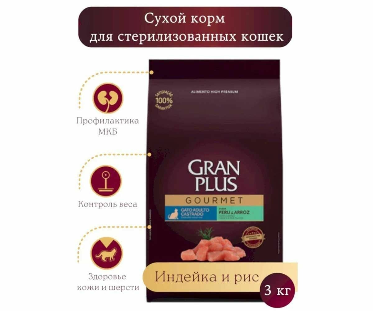 Granplus Gourmet Cat Sterilised сухой корм для взрослых стерилизованных и кастрированных котов и кошек, с индейкой и рисом - 3 кг