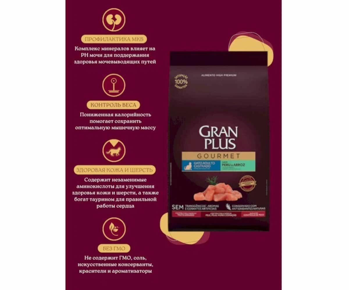GRANPLUS GOURMET CAT STERILISED для взрослых кастрированных котов и стерилизованных кошек с индейкой и рисом (10,1 кг)