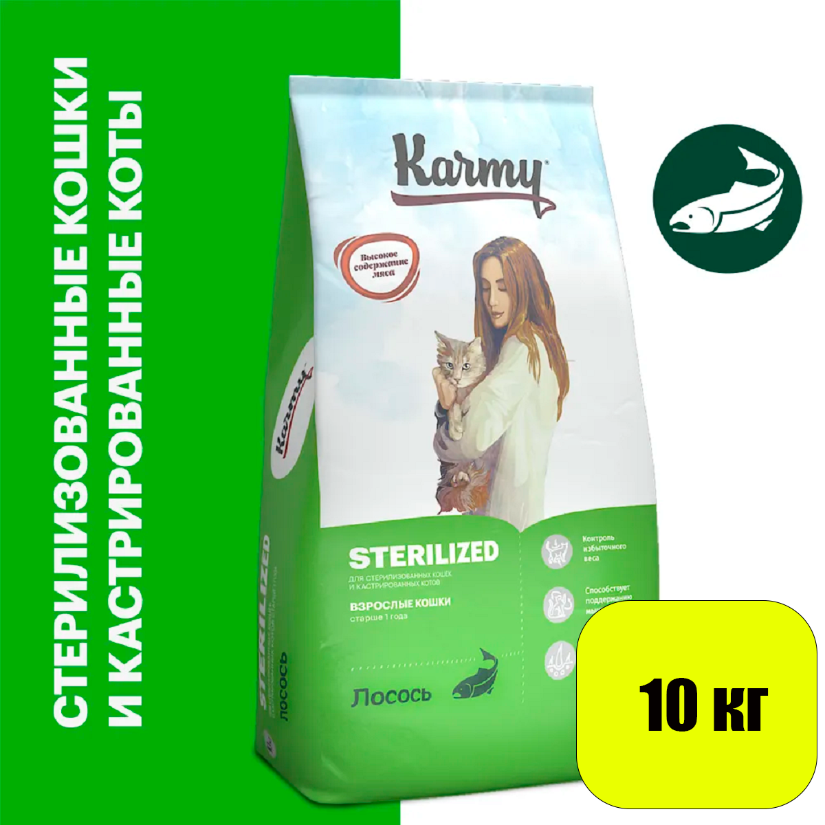 Купить Сухой корм для стерилизованных кошек и кастрированных котов Karmy, с лососем, 10 кг