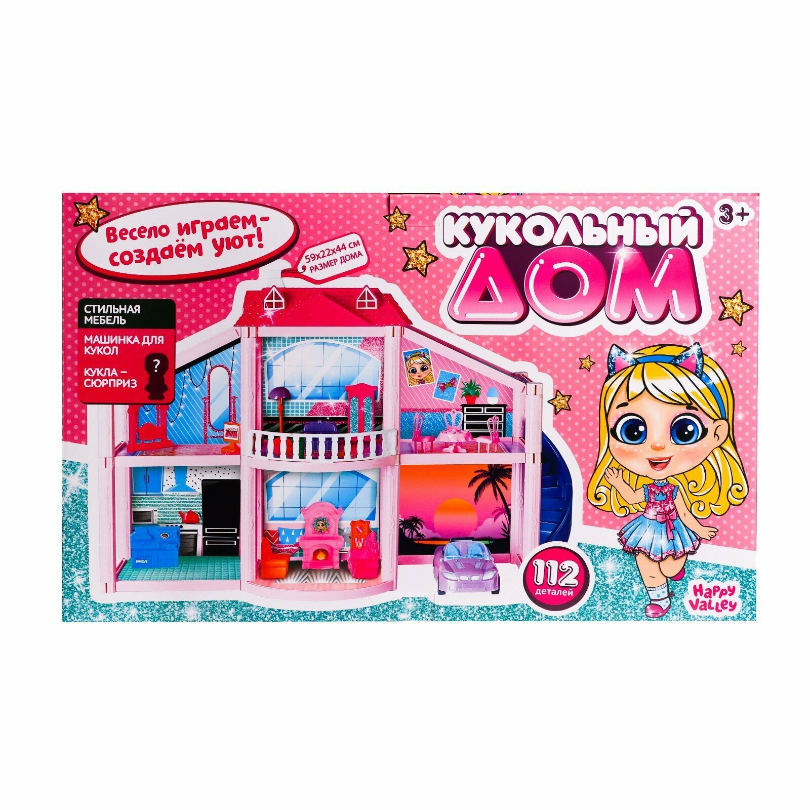 Дом для кукол Happy Valley "Кукольный дом", игрушки для девочек, кукольный домик, с мебелью, с аксессуарами