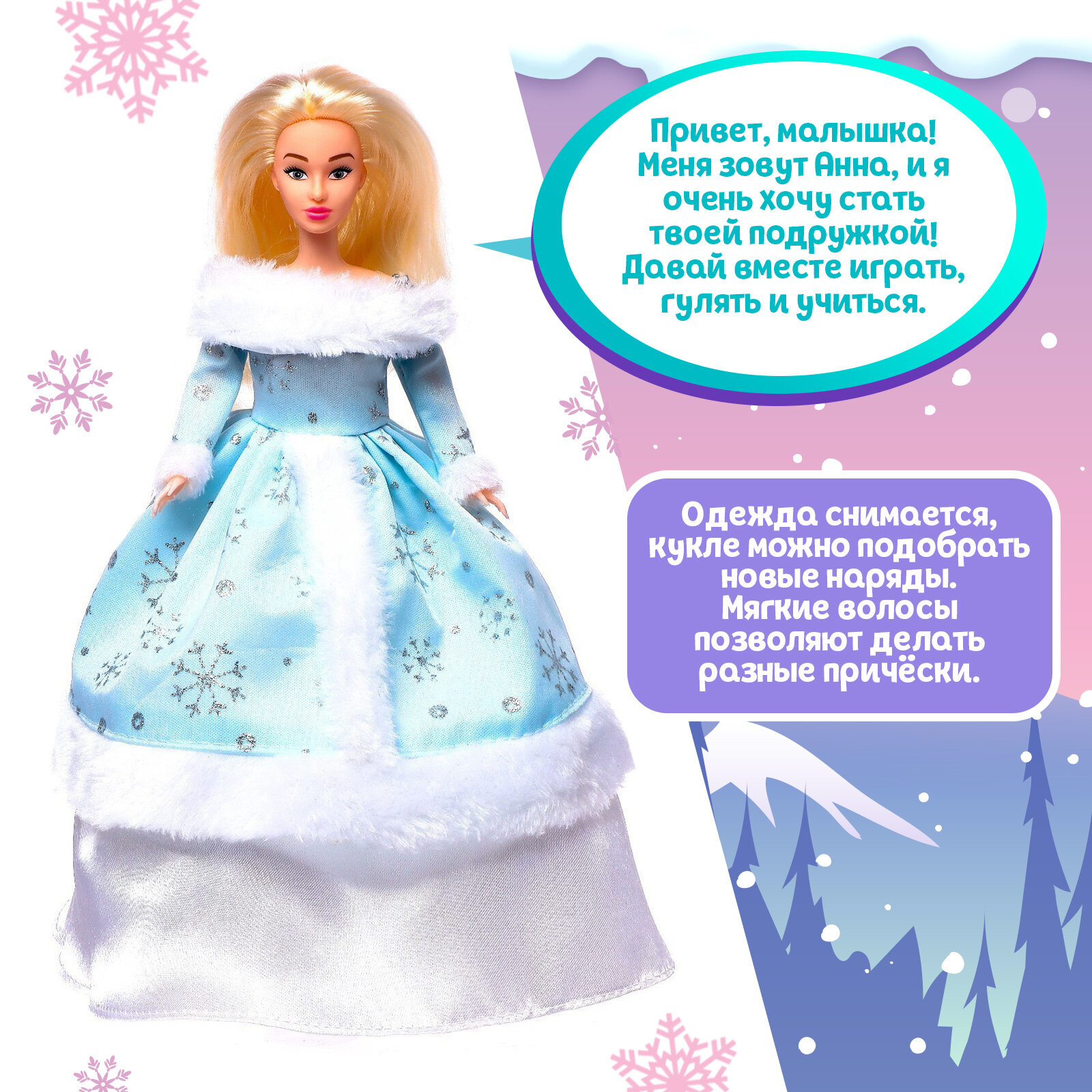 Музыкальная кукла Happy Valley "Анна Снегурочка" в платье, танцует, рассказывает стихи и сказки, на пульте управления