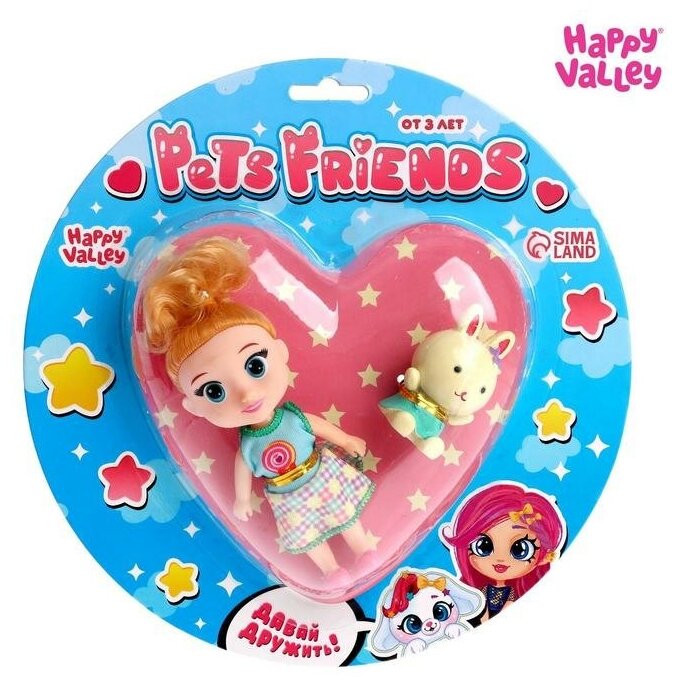 Куколка Happy Valley с питомцем, Pets Friends, зайка, в блистере, 11 см интересное: