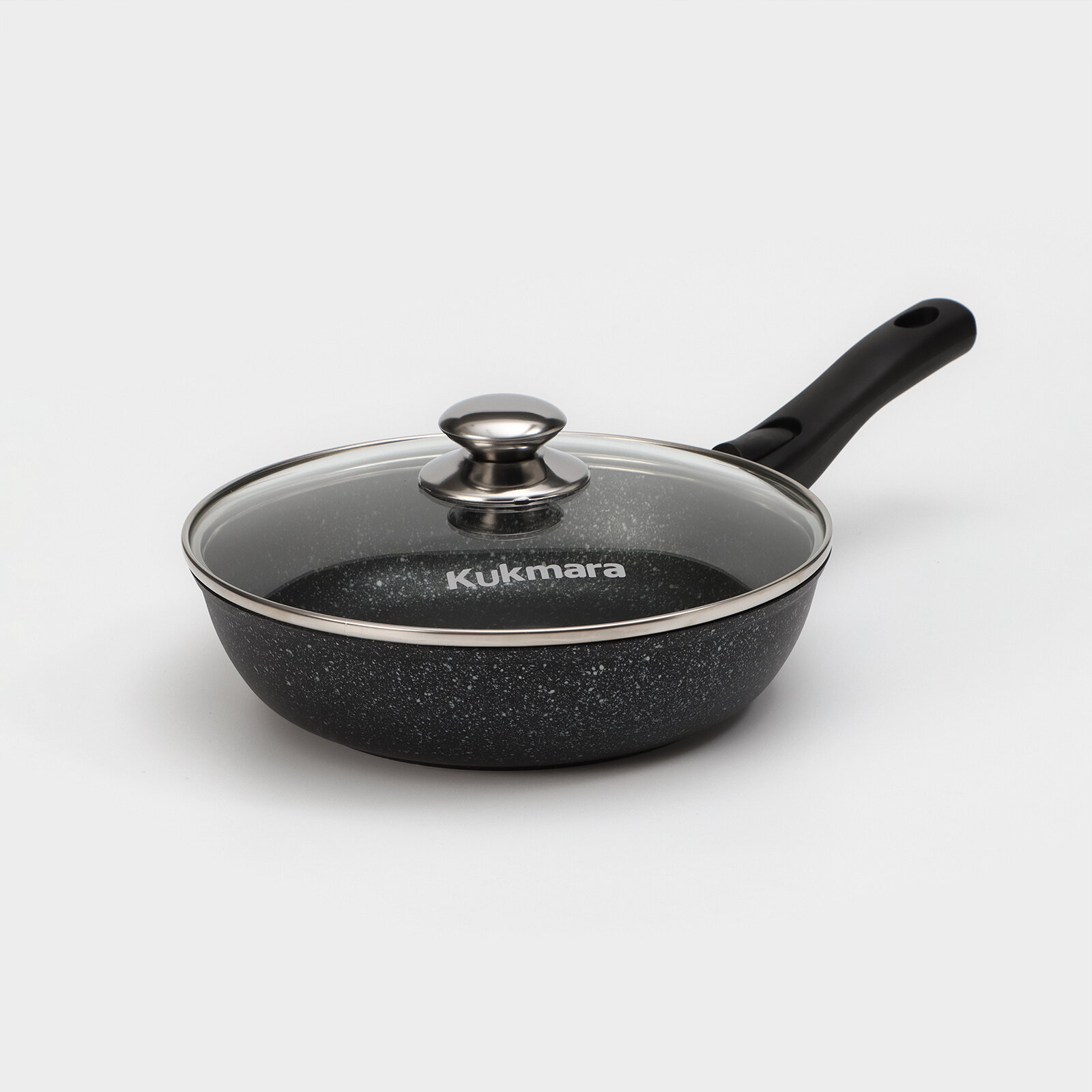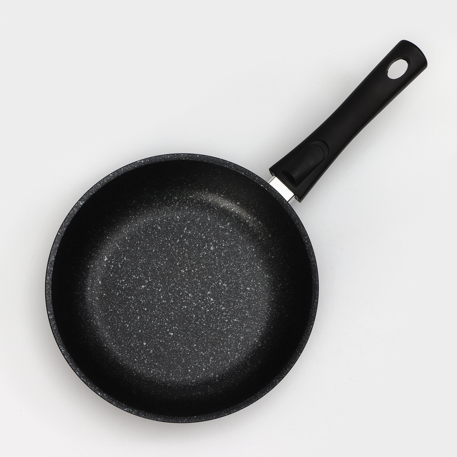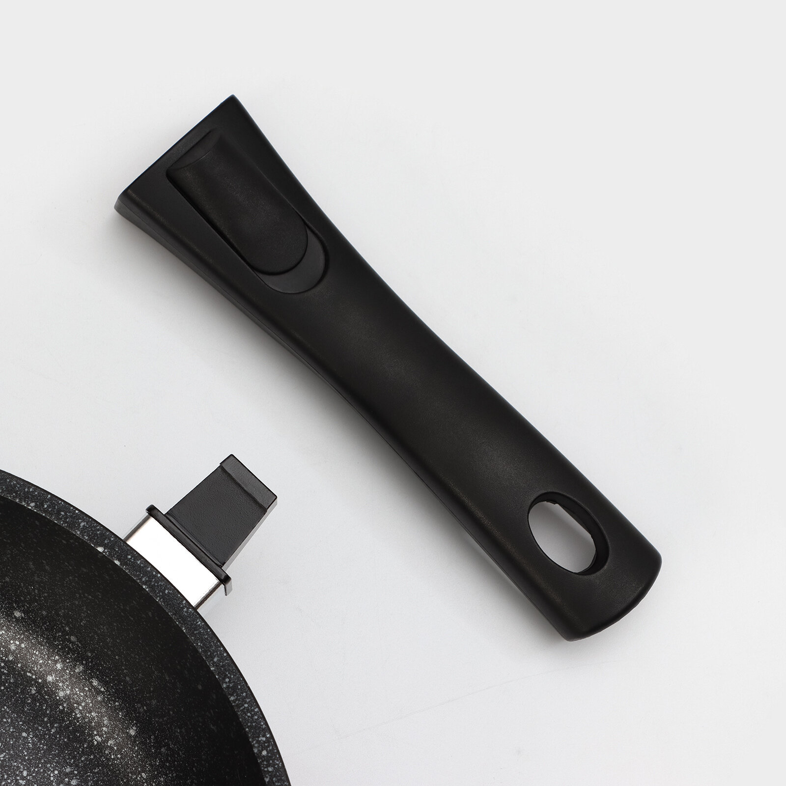 Сковорода, d=24 см, съёмная ручка, стеклянная крышка, антипригарное покрытие, цвет тёмный мрамор интересное: