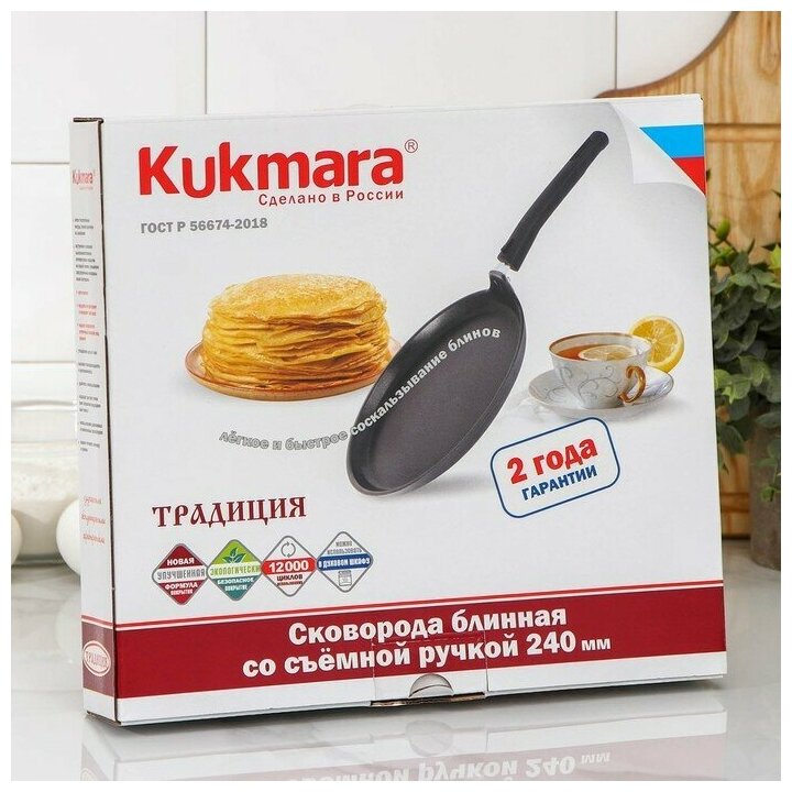 Сковорода блинная "Традиция", d=24 см, съёмная ручка, антипригарное покрытие, цвет чёрный интересное: