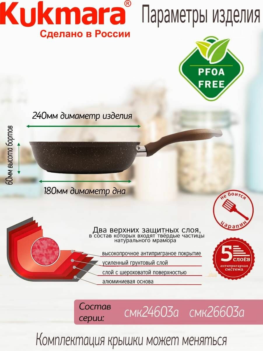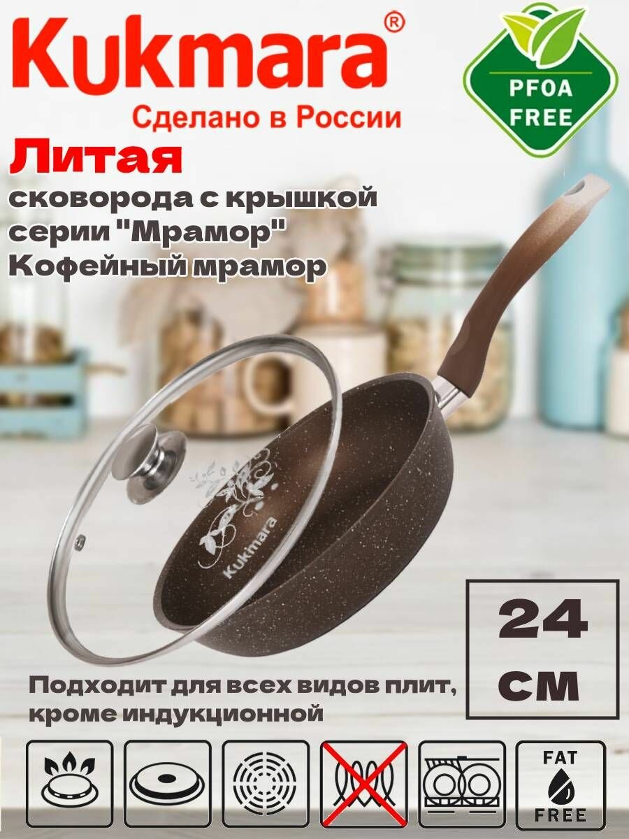 Сковорода 26см Kukmara Кукмара Kukmara Кукмара стеклянная крышка Антипригарное покрытие Кофейный мрамор смк26603а