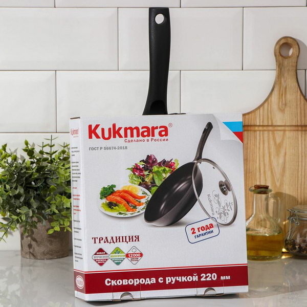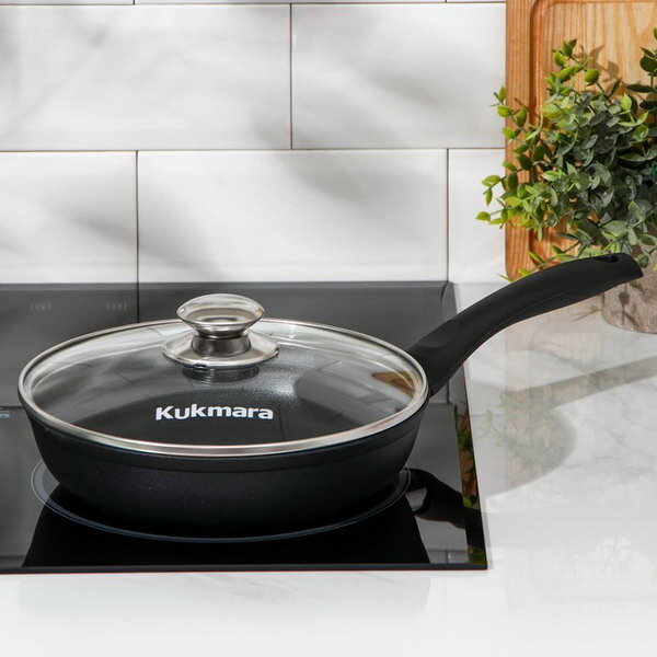 Сковорода Kukmara "Традиция", 22х6 см, стеклянная крышка, утолщенное дно, антипригарное покрытие
