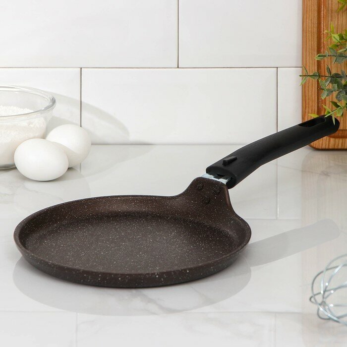 KUKMARA Сковорода блинная , d=20 см, пластиковая ручка, антипригарное покрытие, цвет кофейный мрамор интересное: