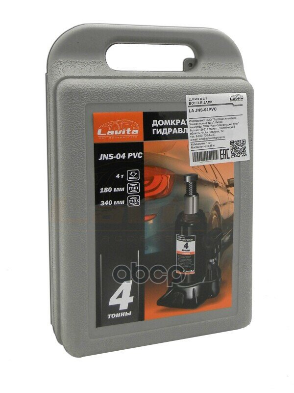 Купить Домкрат бутылочный гидравлический LAVITA, LA JNS-04PVC, 4Т; Min:180-Max:350; Пластиковый кейс