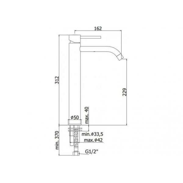 Высокий смеситель на столешницу Paffoni Light 22,9см, арт. LIG081CR, неповоротный излив, без донного клапана