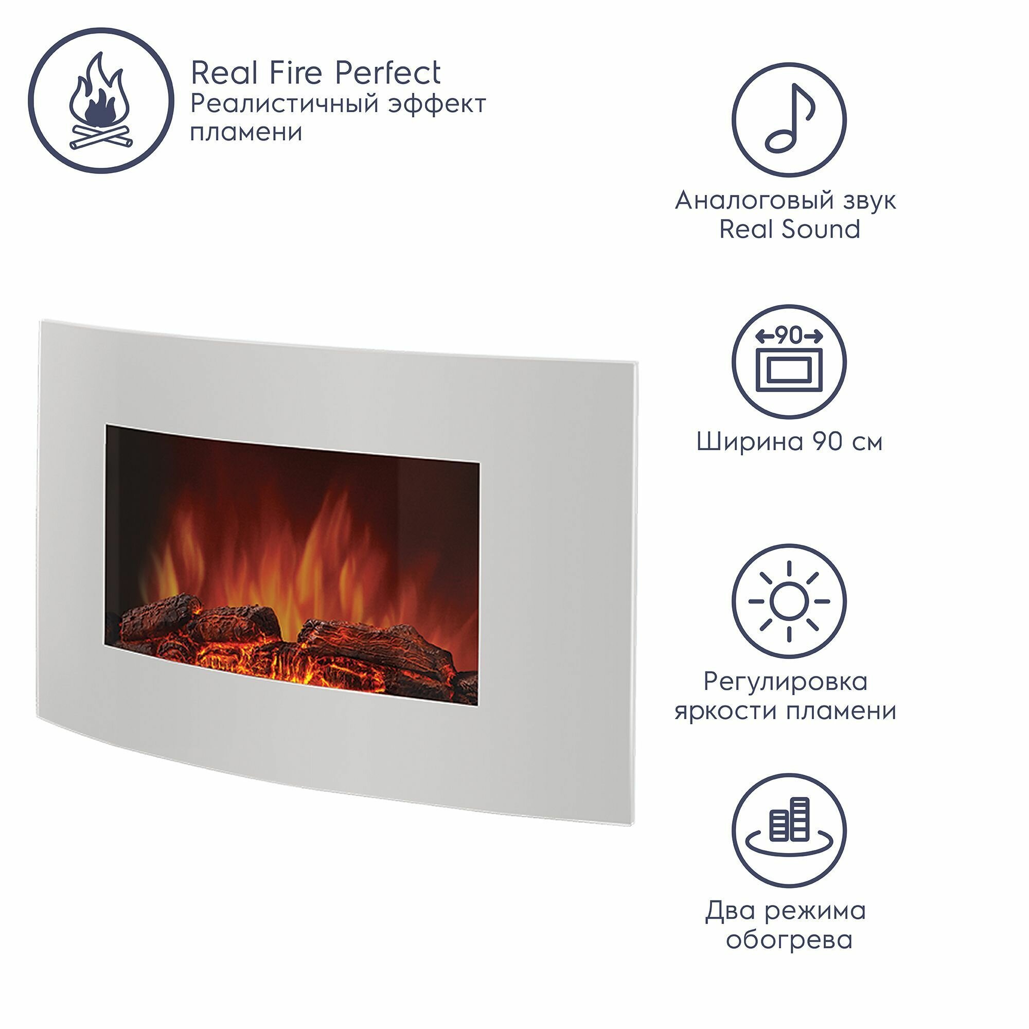 | Плюсы: | Настенный, симпатичный дизайн, эффект живого пламени и треска дров, очень тонкий, удобный пульт управления. |