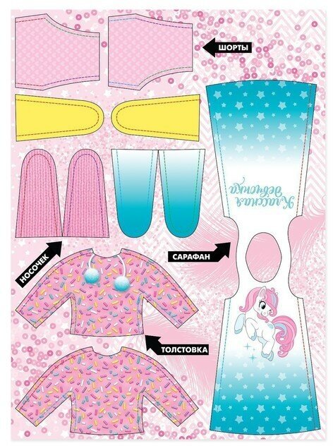 | Комплектация | кукла, 3 полотна ткани с уже нанесёнными выкройками |