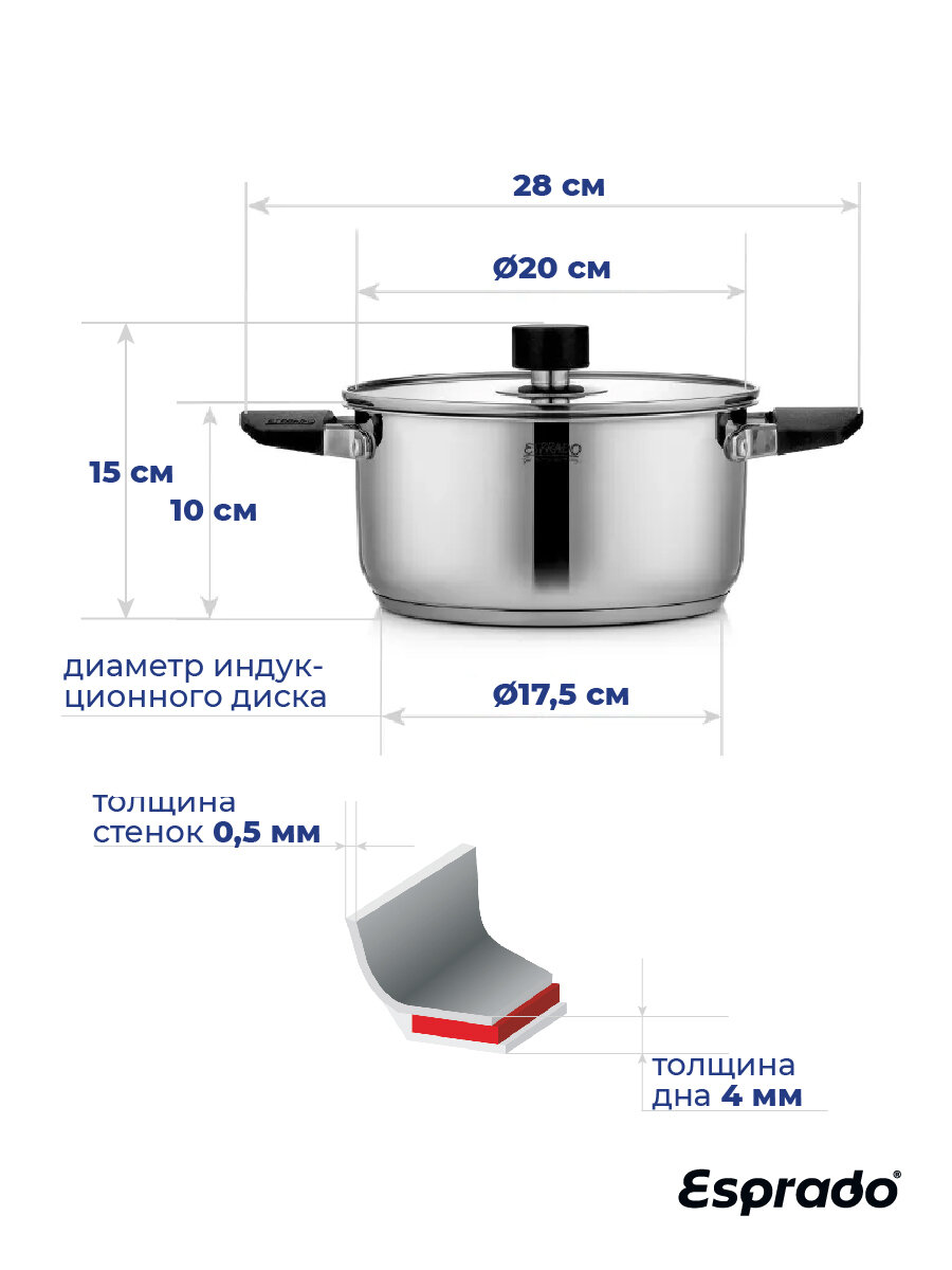 Кастрюля с крышкой Esprado El Rey, 20*10 см, 3,1 л интересное: