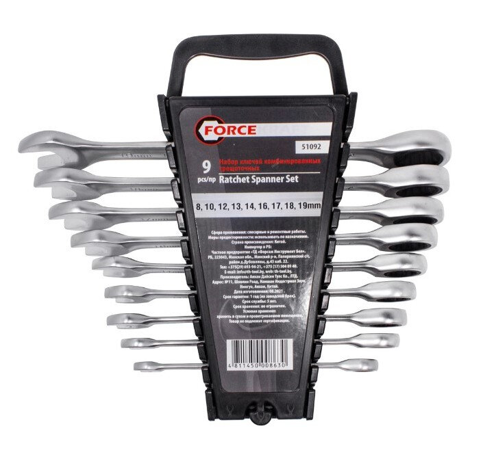 Набор ключей комбинированных трещоточных 9 предметов 8-19 мм FORCEKRAFT FK-51092 интересное: