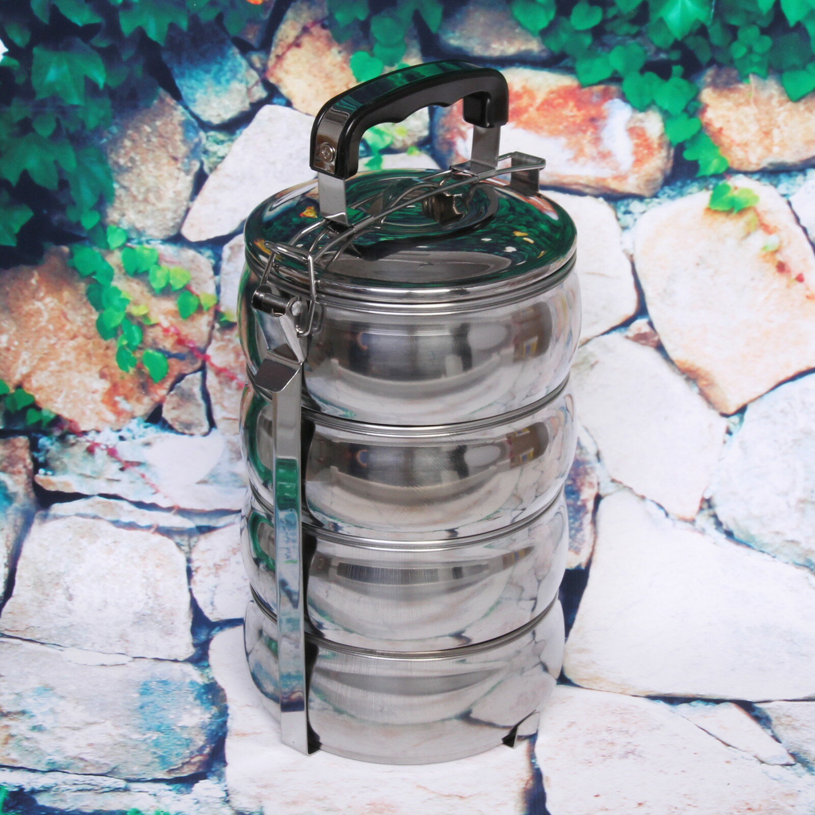 Контейнер для еды, ланч бокс металлический 4 уровня, круглый