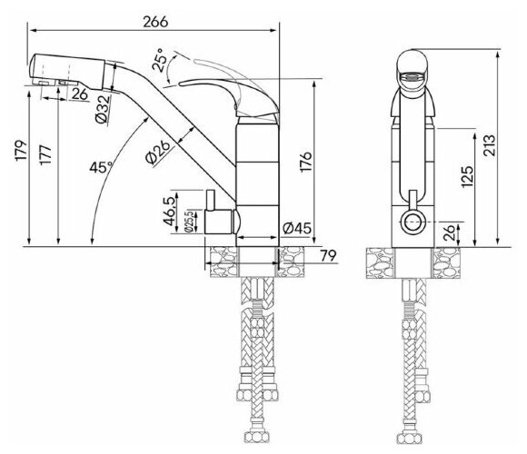 Смеситель Paulmark Hessen He213017-308 для кухонной мойки, черный