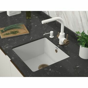 Смеситель для кухни ESSEN, белый матовый-бронза, 213011-431BR, Paulmark