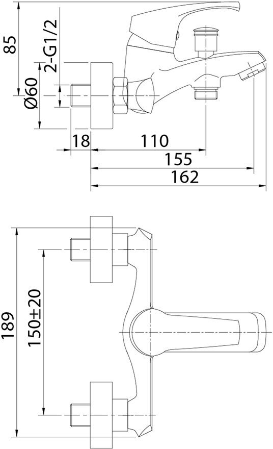 Смеситель для ванны и умывальника 35к Milardo STESB02M02 "Sterm" излив 172мм хром