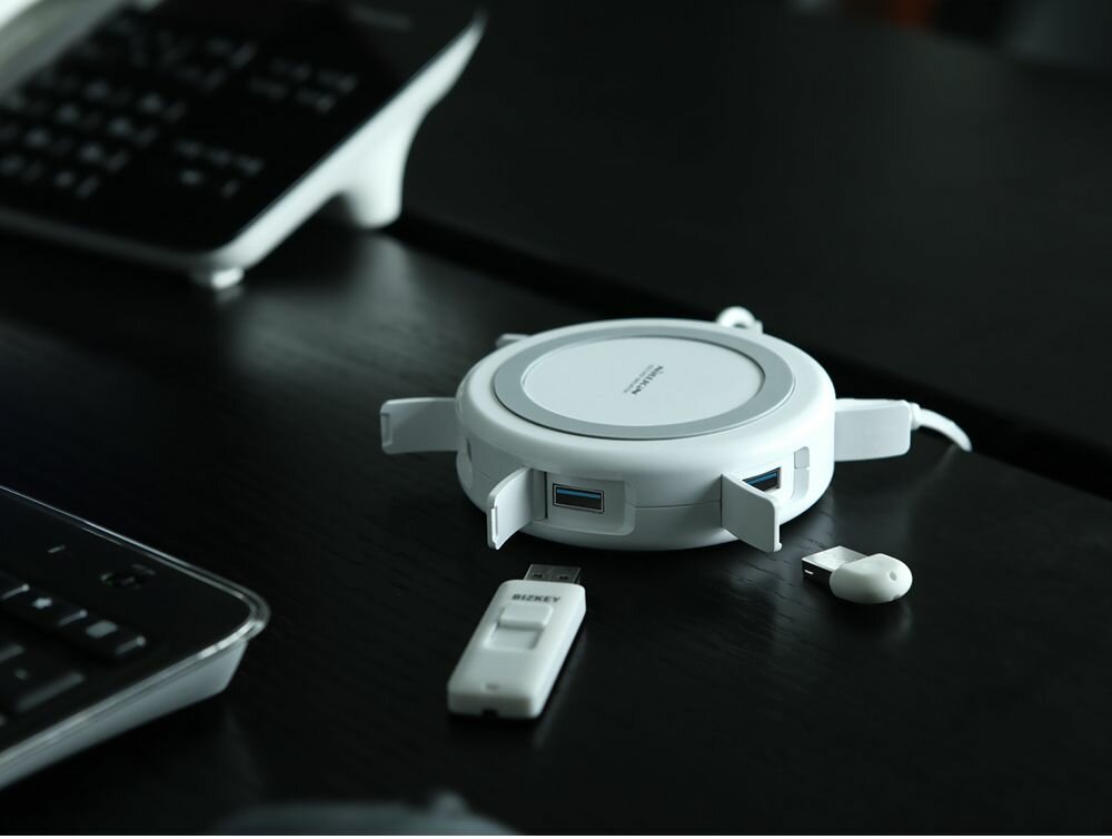 Беспроводная зарядка с хабом 4xUSB Nillkin Hermit - Белая