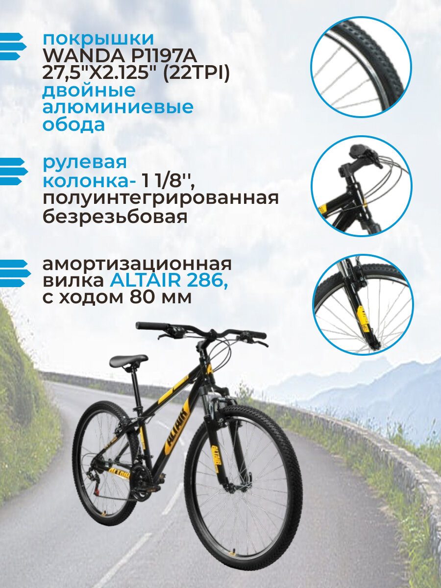 Велосипед 27,5" Altair AL 27,5 V 21 скорость чёрный/оранжевый 20-21 г рама 19" RBKT1M37G017 интересное: