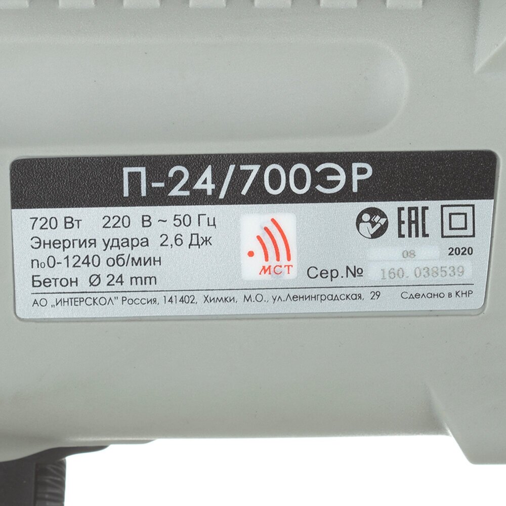 Перфоратор электрический Интерскол П-24/700ЭР (160.1.2.23) 720 Вт 2,6 Дж SDS-plus интересное: