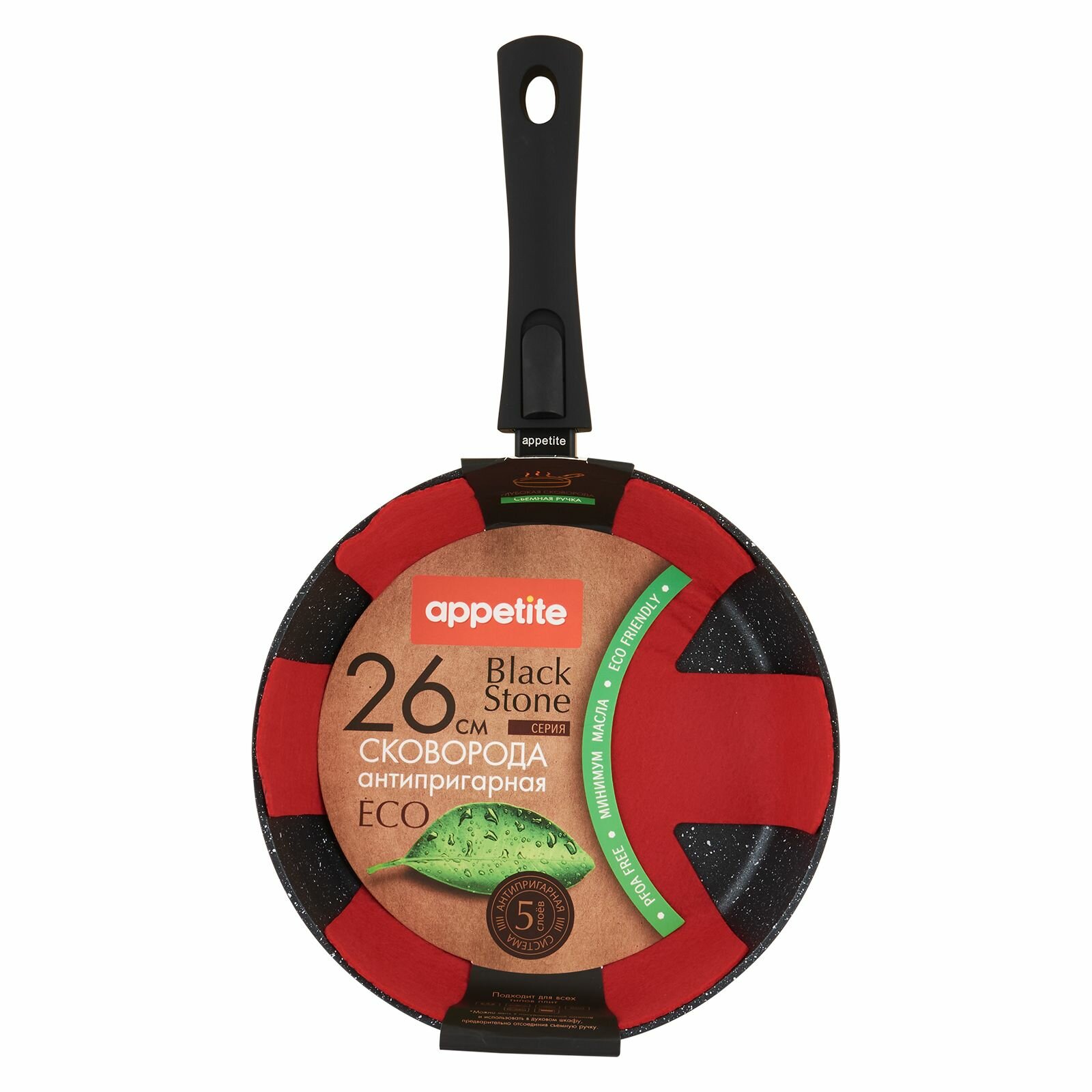 СохранитьСковорода глубокая 26см со съемной ручкой Black Stone ТМ Appetite интересное: