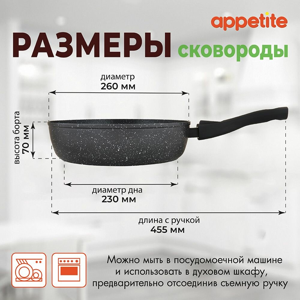Сковорода Appetite Black Stone BL2261 антипригарное покрытие съёмная ручка глубокая 26см