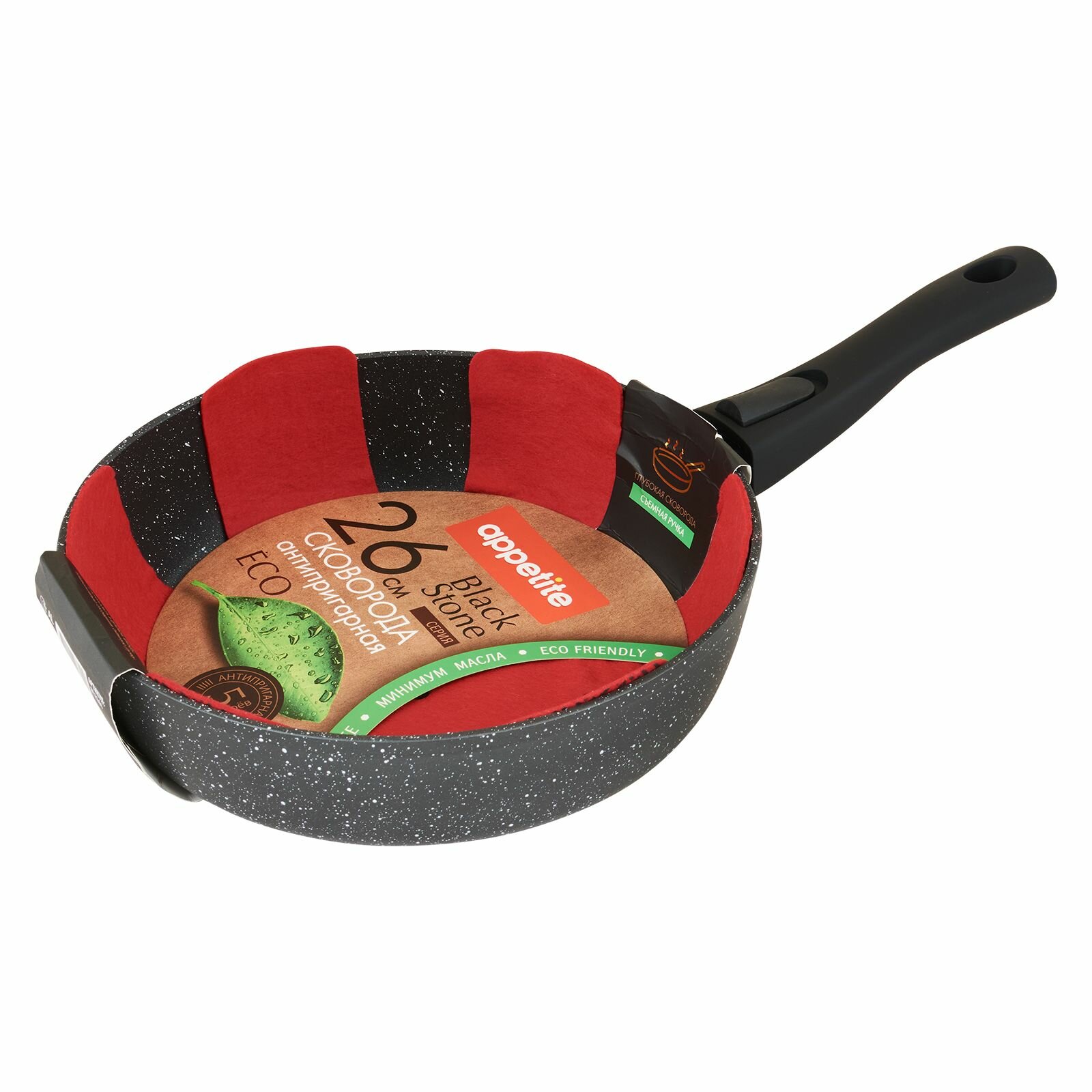 Сковорода глубокая Appetite Black Stone антипригарная, со съемной ручкой, 26 см