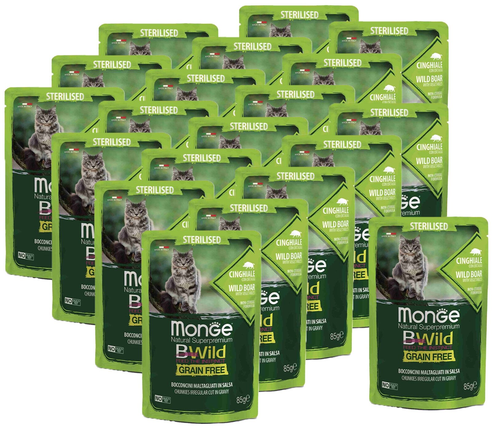 Monge Cat BWild GRAIN FREE паучи из мяса дикого кабана с овощами для стерилизованных кошек 85г х 20 шт. интересное: