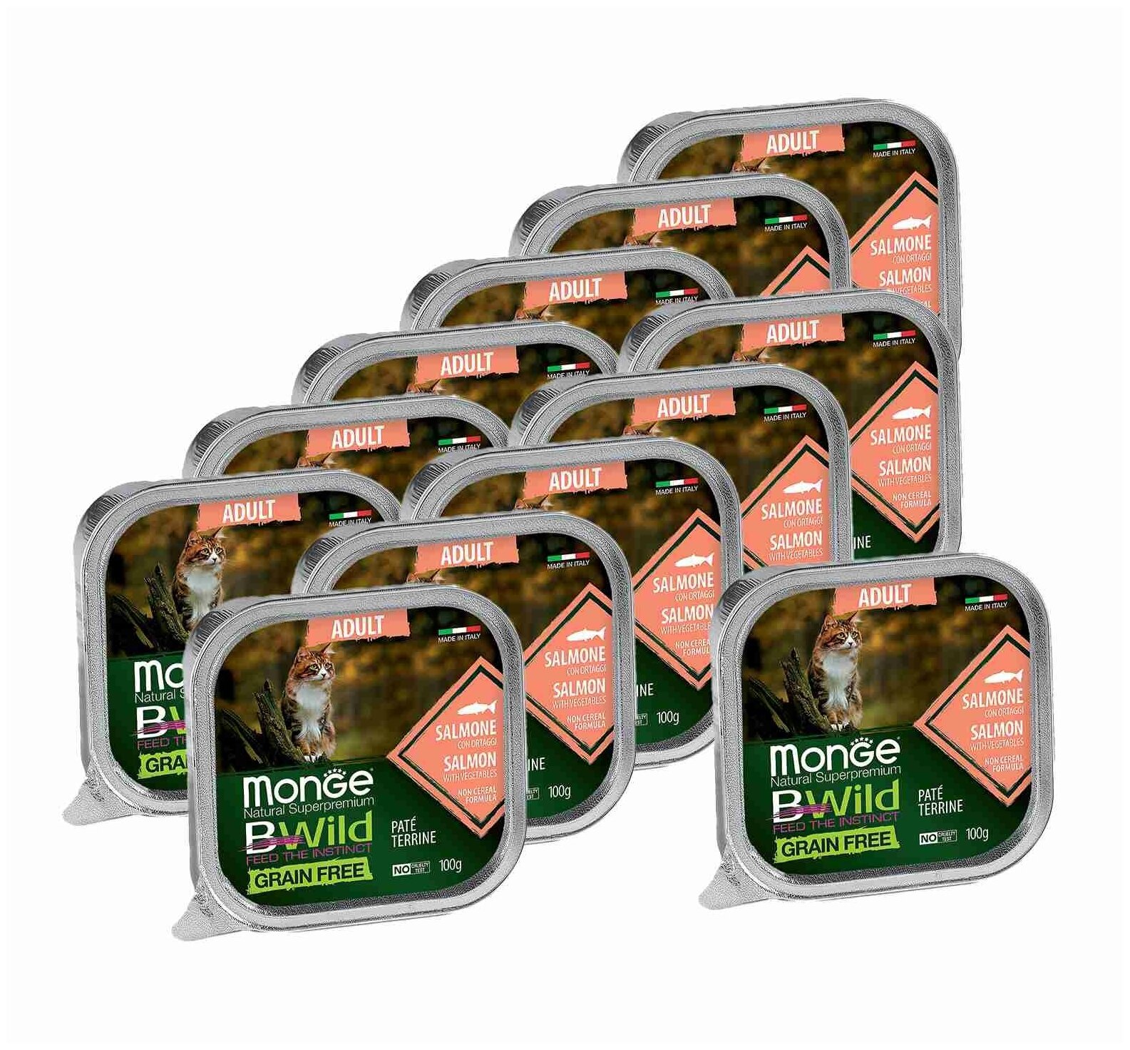 Купить Monge Cat BWild GRAIN FREE беззерновые консервы из лосося с овощами для взрослых кошек 100г х 12 шт.