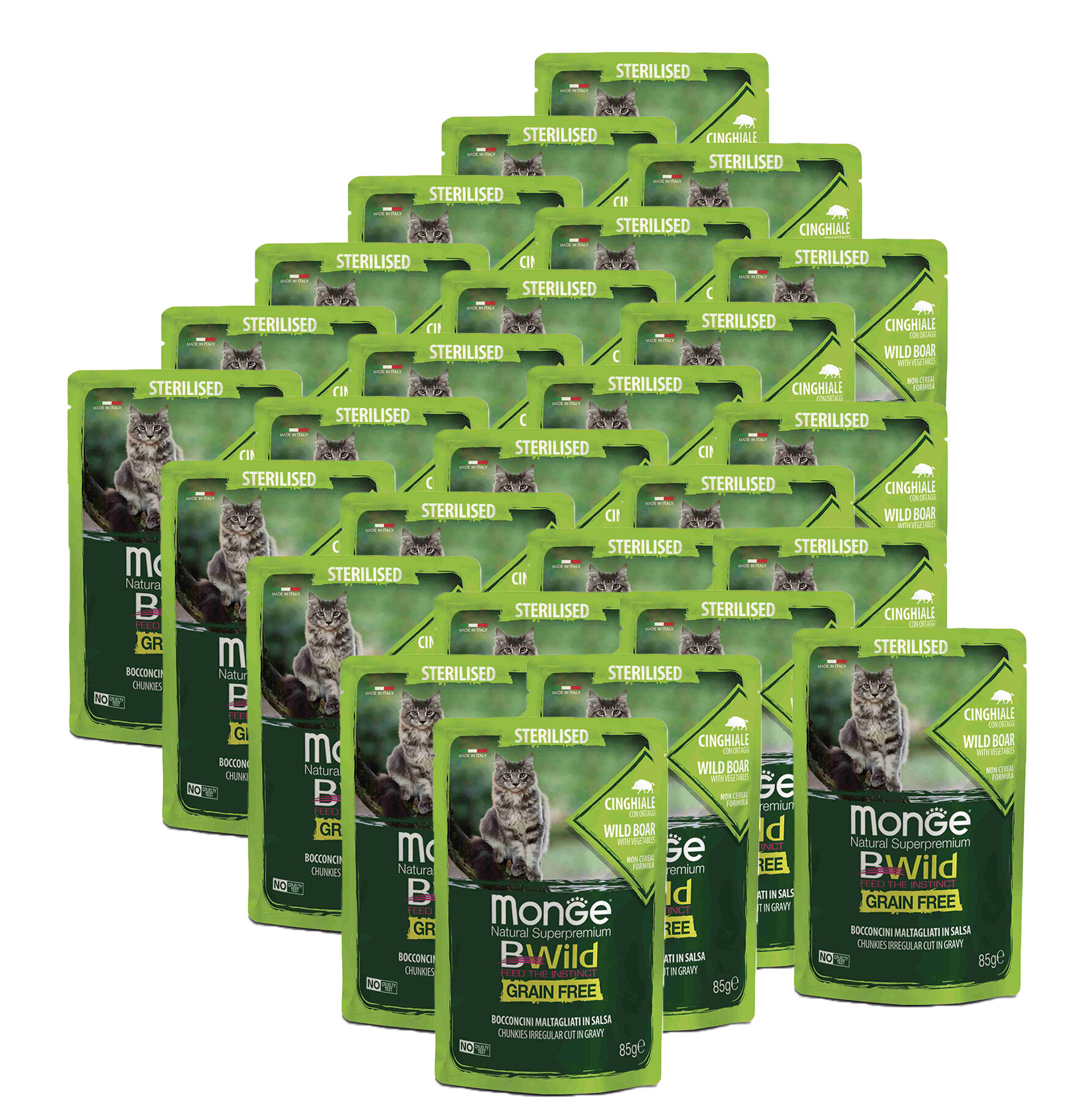 Купить Monge Cat BWild GRAIN FREE паучи из мяса дикого кабана с овощами для стерилизованных кошек 85г х 28 шт.