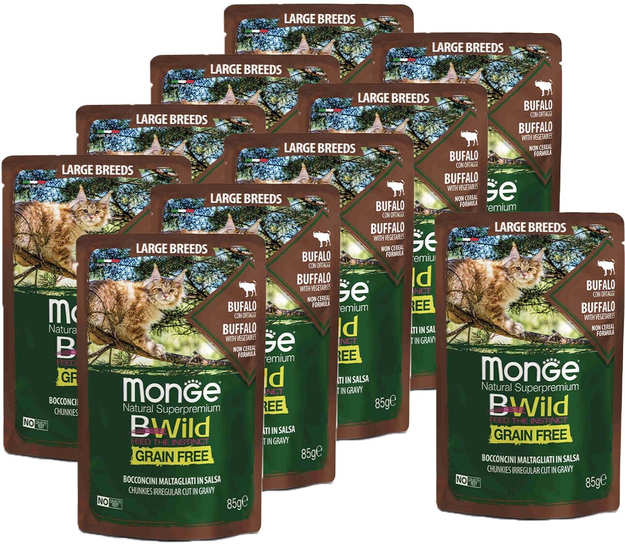 Monge Cat BWild GRAIN FREE паучи из мяса буйвола с овощами для кошек крупных пород 85г х 10 шт. интересное: