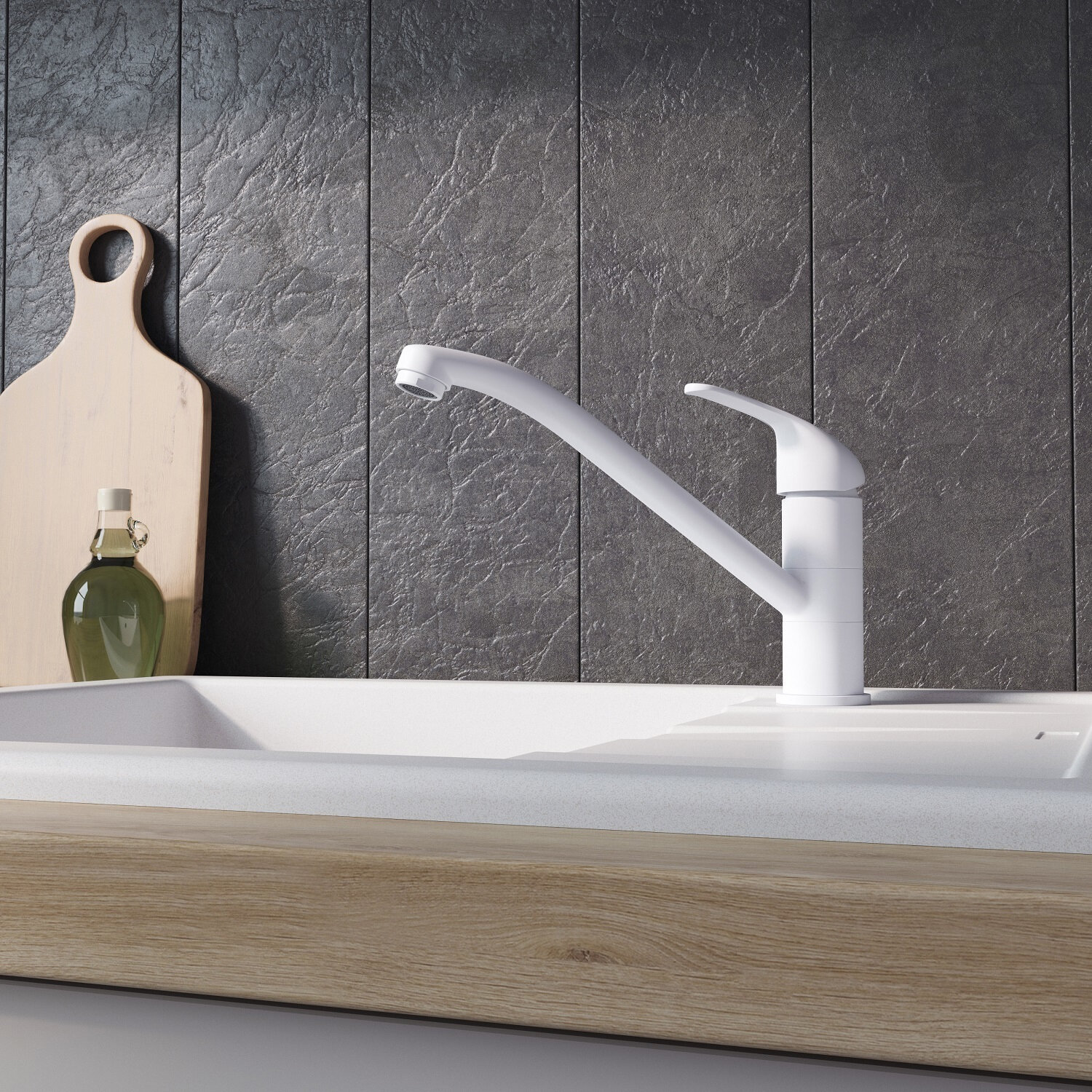 Смеситель для кухни, белый матовый, Meal, Milardo, M02WTR0M05
