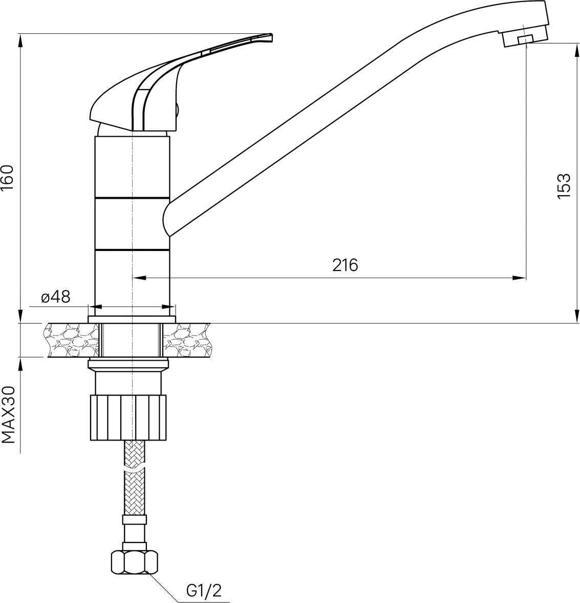 | Длина излива | 216 мм |