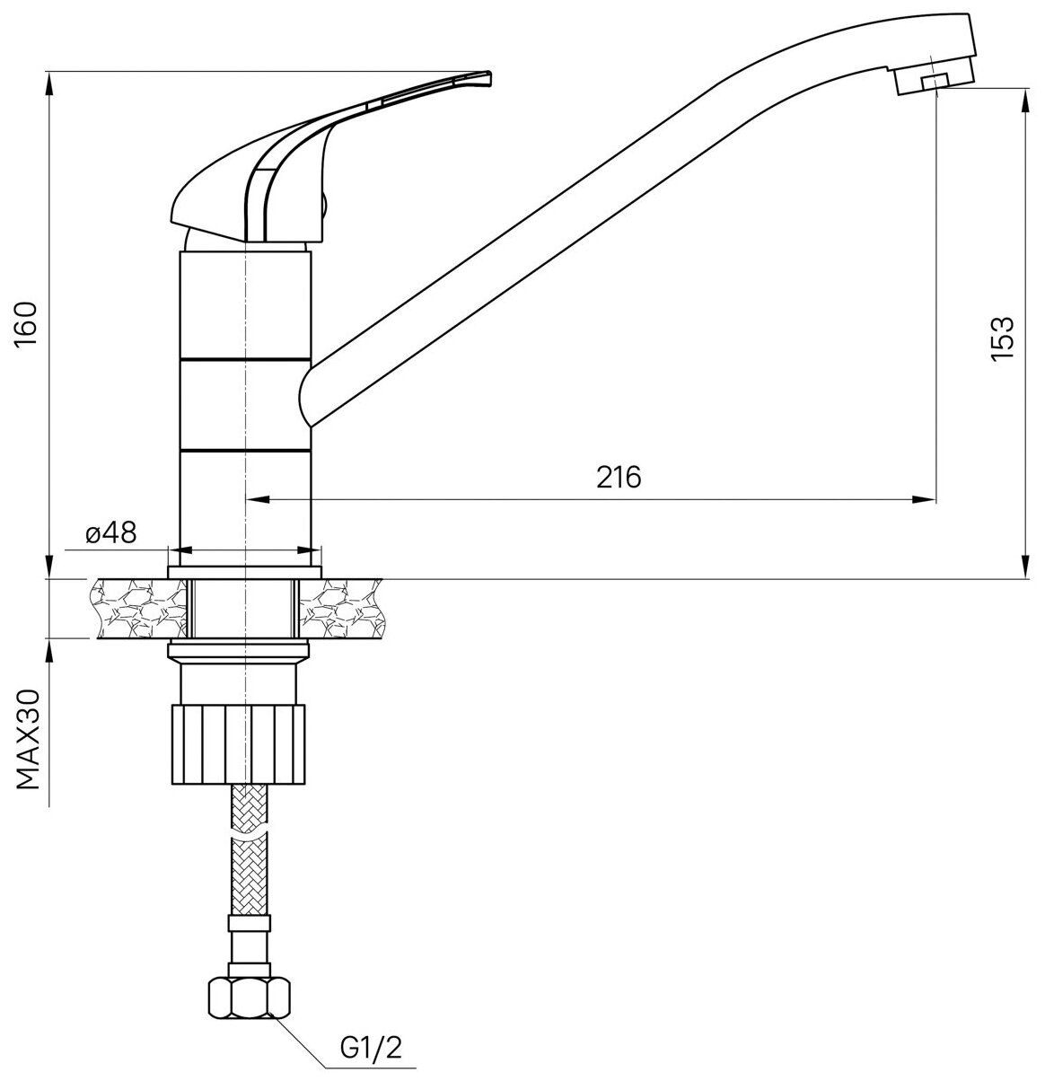 | Длина излива | 216 мм |