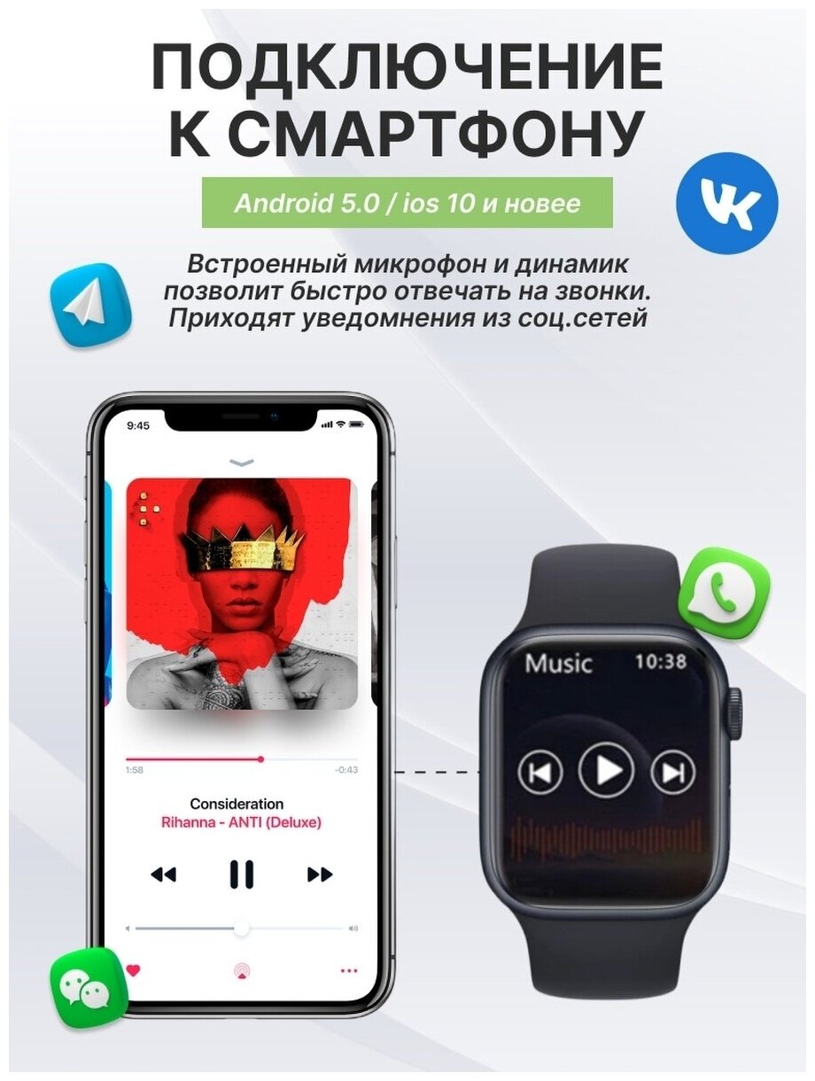 Умные смарт-часы Smart Watch P80 Pro c NFC, 45mm/7 Series/женские часы/ мужские часы (Черный) интересное: