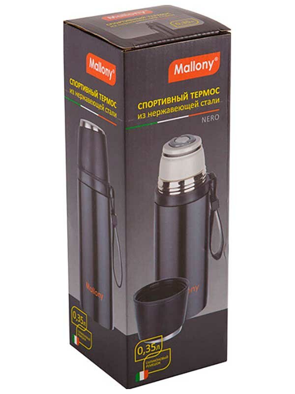 Купить Термос спортивный Mallony NERO, 0,35 л, с чашкой и силиконовым ремешком для переноски