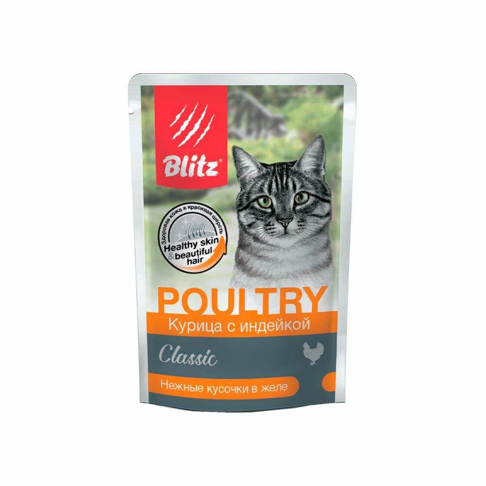 BLITZ CLASSIC для взрослых кошек с курицей и индейкой в желе пауч 85 гр 85 гр х 4 шт